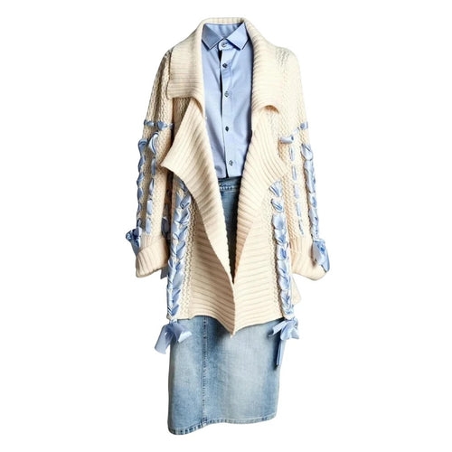 Vintage Color-Block Wrap Top & Blue Pattern Skirt Set